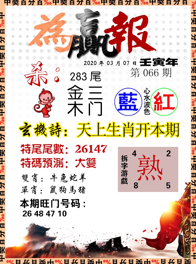 | 064期〖三肖〗鸡龙马 |