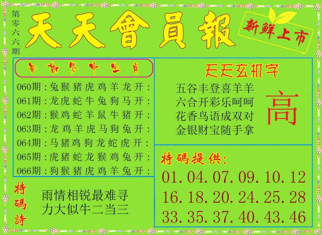 第061期开奖结果:羊12 |